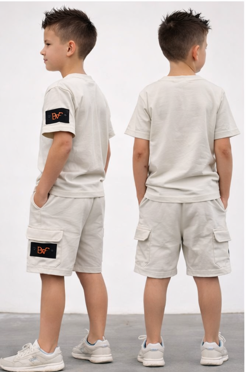 Jongens set met korte broek - beige logo